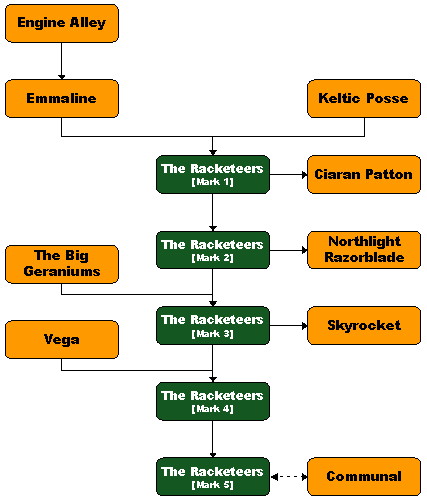 | The Racketeers [Mark 1] | Line Up : Eamonn Dowd [Vocals, Guitars, Mandolin & Harmonica], Emmaline Duffy-Fallon [Drums], Alan Madigan [Guitar], Ciaron Patton [Bass Guitar], Sheila Sullivan [Violin] |